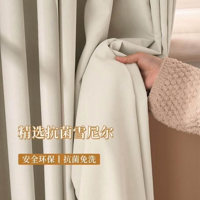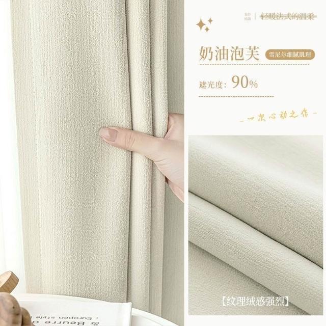 🚀台灣出貨&嚴選品質✨ 奶油絲絨雪尼爾窗簾米白色臥室遮光高溫定型臥室陽臺飄窗遮擋