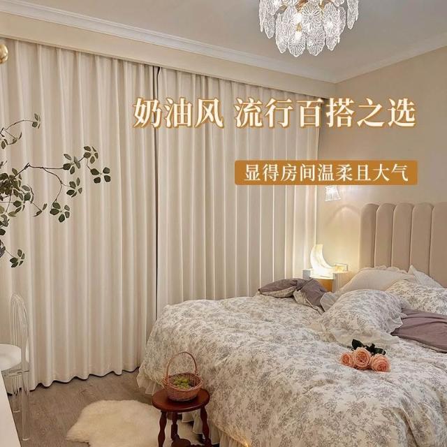 🚀台灣出貨&嚴選品質✨ 奶油絲絨雪尼爾窗簾米白色臥室遮光高溫定型臥室陽臺飄窗遮擋