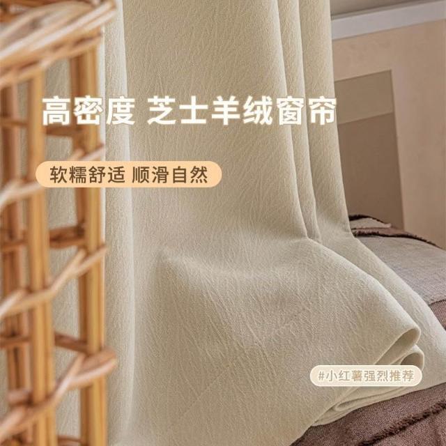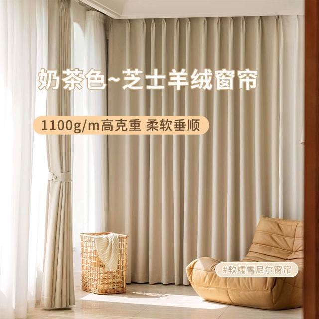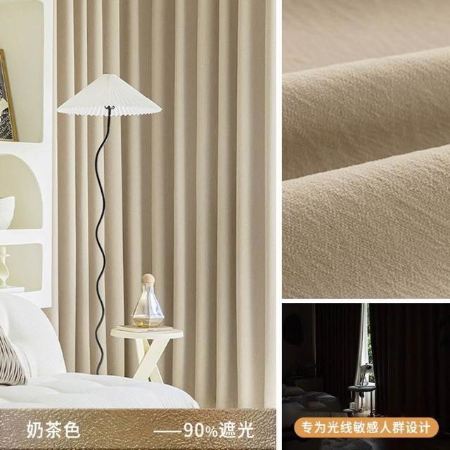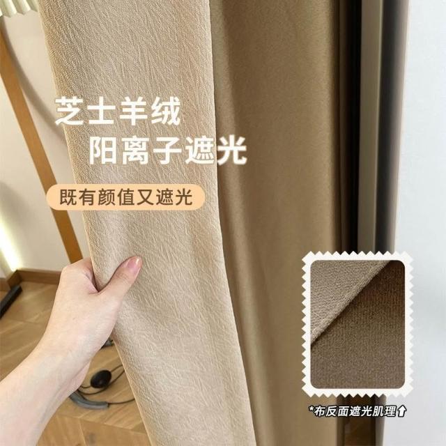 🚀台灣出貨&嚴選品質✨ 奶茶色芝士羊絨雪尼爾窗簾帶圖案加厚臥室遮光布臥室客廳隔音降噪