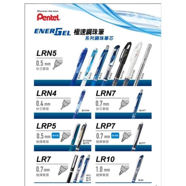 Pentel 飛龍0.5 極速鋼珠筆芯 替芯 共12色 LRN5 (適用BLN105)