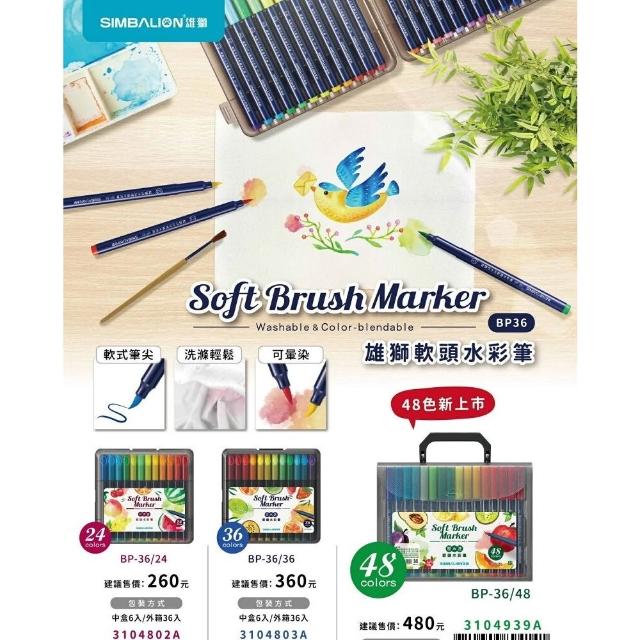 SIMBALION 雄獅文具BP-36/24 可水洗 軟頭水彩筆 24色 水彩筆 彩色筆 3規格