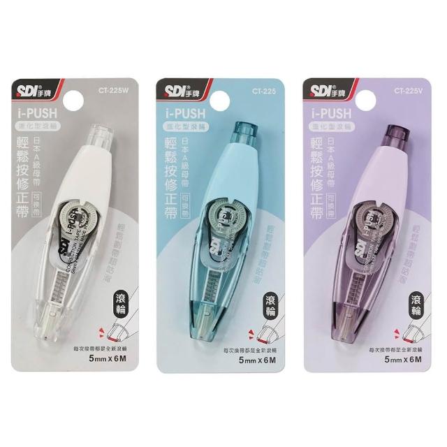 SDI 手牌淡彩色 CT-225 輕鬆按修正帶 5mmx6M 滾輪設計