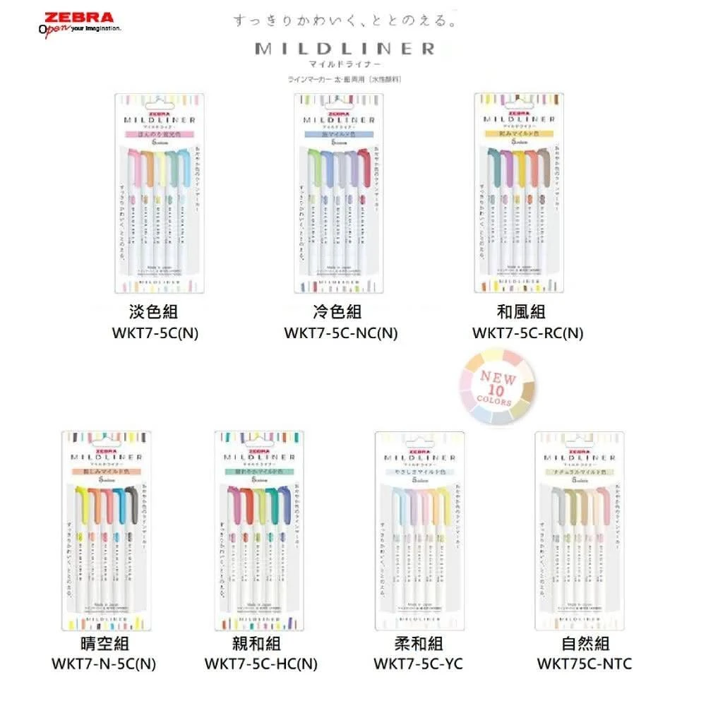 ZEBRA 斑馬牌新色上市 MILDLINER 雙頭 柔性螢光筆 5色組 WKT7-5C 文具賞