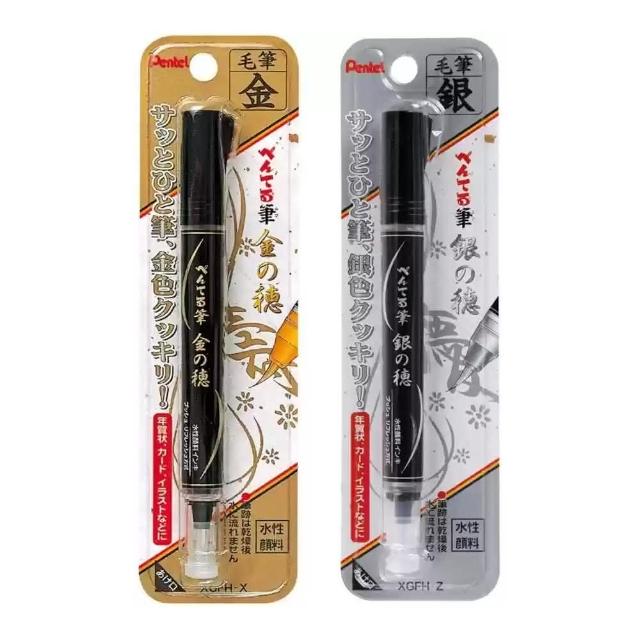Pentel 飛龍按壓式 金屬 自來水毛筆 金色 銀色 XGFH 柔繪筆 小楷毛筆 練字 賀年卡