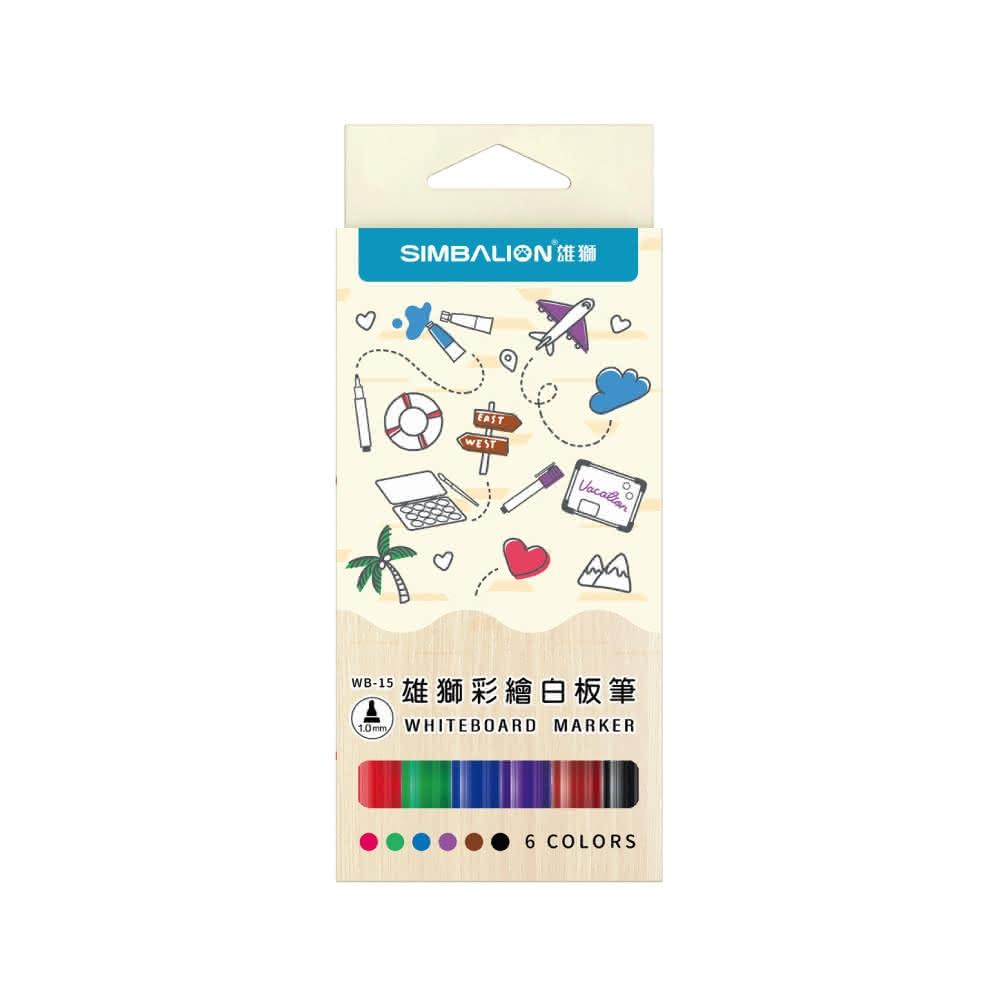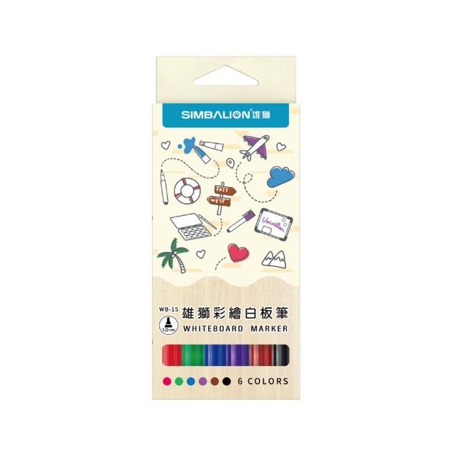 SIMBALION 雄獅文具小支彩繪白板筆 6色組 1.0mm 白板筆 彩繪筆 酒精性 WB-15