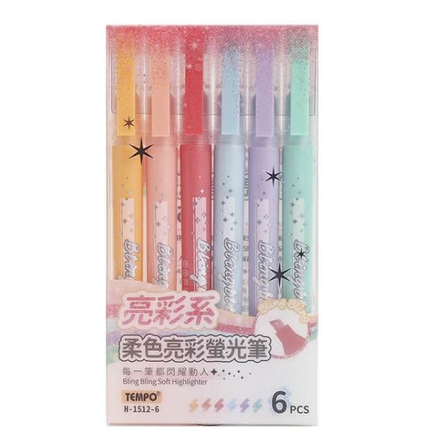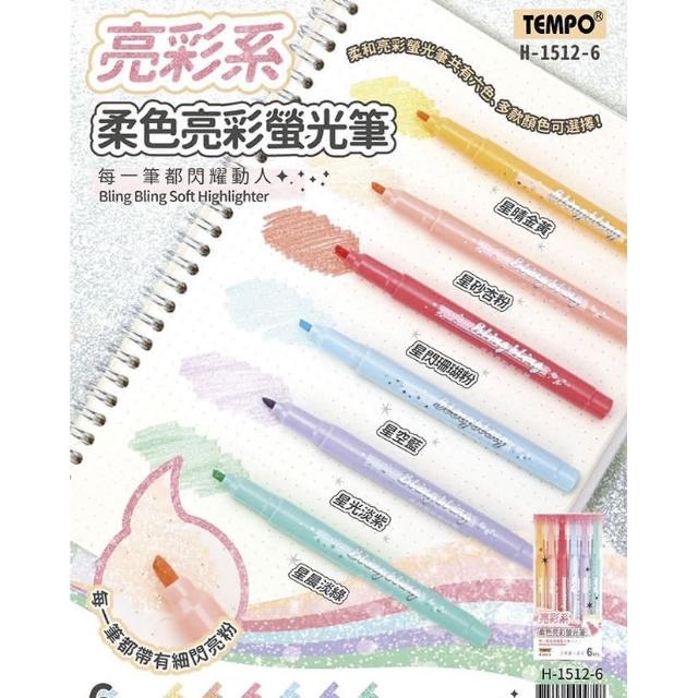Tempo 節奏亮彩系 柔色螢光筆 6色組 套裝 閃亮細粉 H-1512