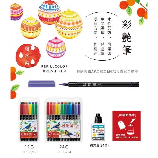 SIMBALION 雄獅文具雄獅 35彩艷筆 24色 BP-35 毛筆式筆尖 可補充墨