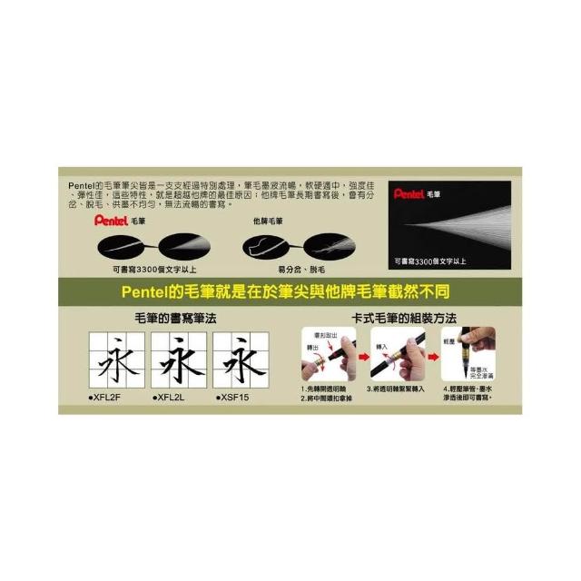 Pentel 飛龍卡式毛筆 極細 中字 可換芯 毛筆 XFL2F XFL2L 自來水筆 墨筆 書法 書寫 抄經 繪圖