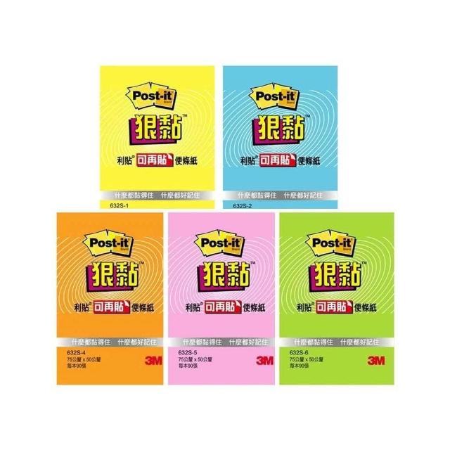 3MPost-it 狠粘 便條紙 便利貼 便條貼 便條紙 可再貼 備忘錄 可再貼 632S 90張 75*50mm