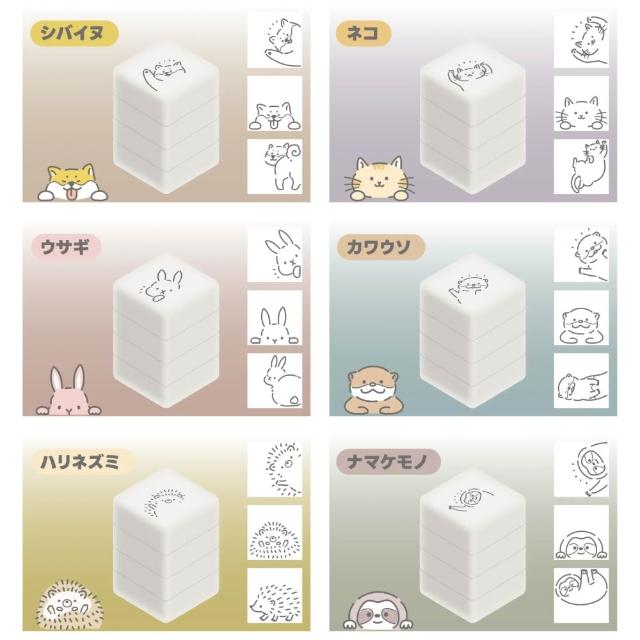 sun-star可愛動物 三連拍 浸透印章 3入組 插畫 編框裝飾 手帳 行事曆 可著色印章 文具賞
