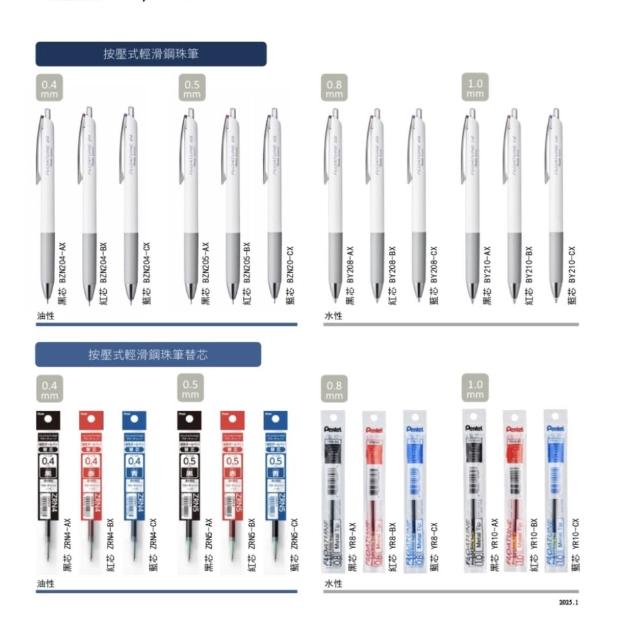 Pentel 飛龍FLOATUNE 輕滑鋼珠筆專用替芯 0.8 1.0 水性 筆芯 替芯 YR8 YR10