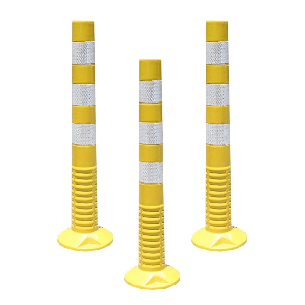 (黃白)防撞柱 防撞桿 分隔柱 反光桿 交通桿 可回彈彈力柱 隔離樁 警示柱 停車場轉彎處 PE警戒桿 路障錐反光防撞柱 固定立柱 警示路障 185-RW755