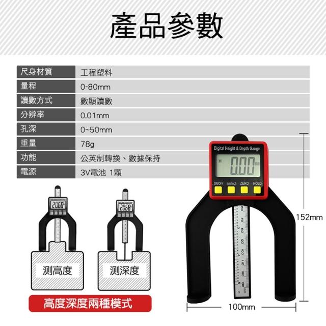 深度測量儀 探針高度尺 鑽孔深度計 木工深度規 高度尺 電子深度規 測量尺 測深度 深度高度尺 185-DHDG80