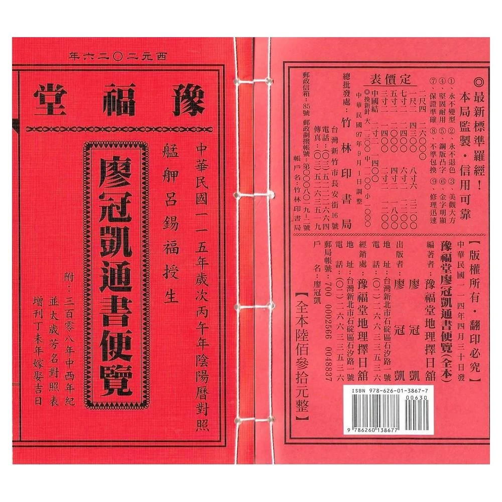 豫福堂2026丙午年-廖冠凱通書便覽-全本(通書、曆書)