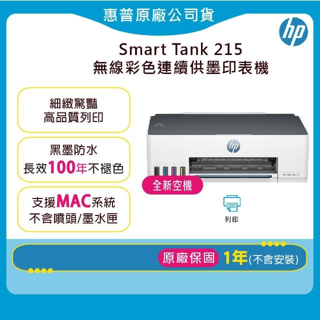 HP 惠普Smart Tank 215連續供墨無線噴墨印表機(全新空機不含噴頭/墨水)