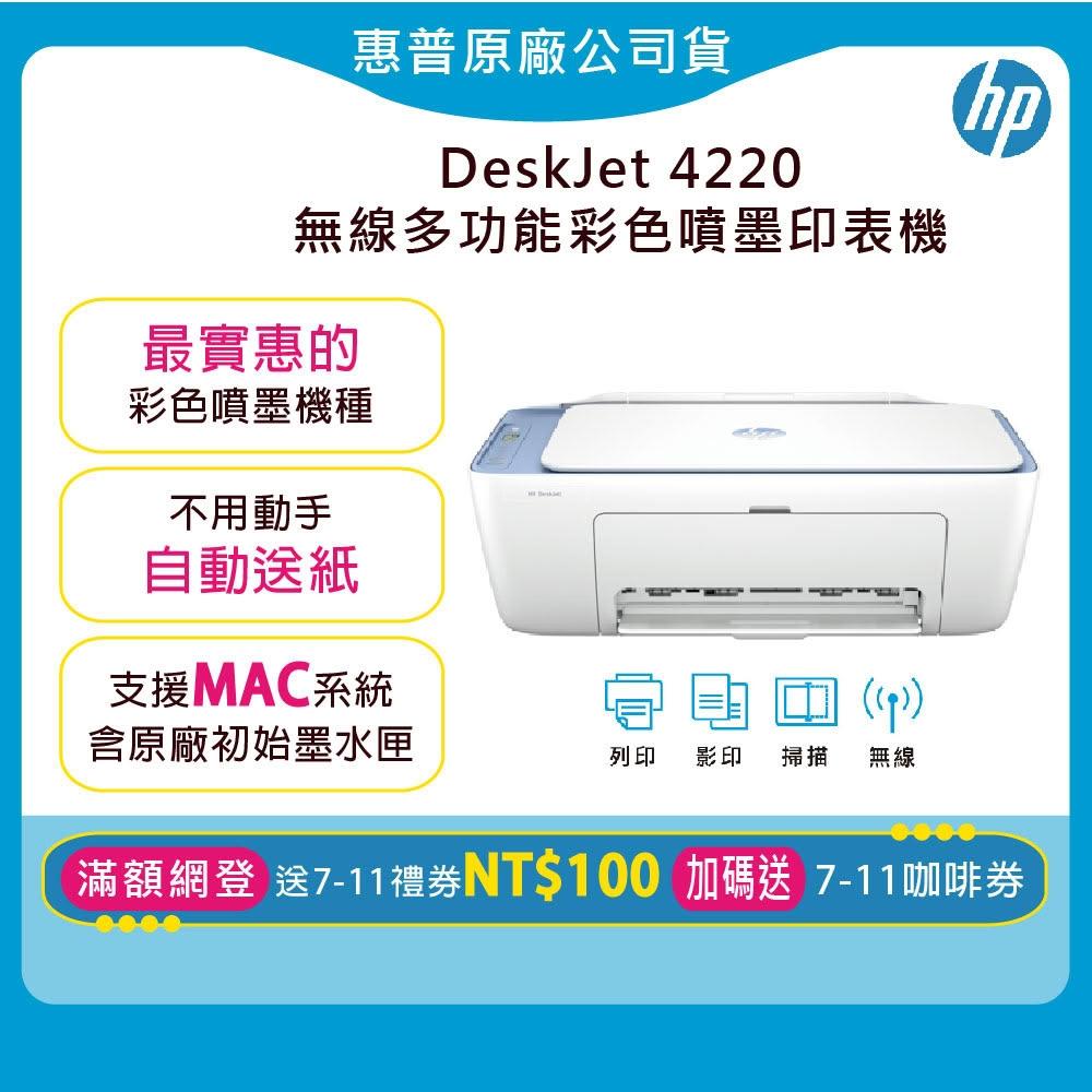 HP 惠普內含原廠初始墨匣★DeskJet 4220 無線多功彩噴印表機(加碼再送7-11咖啡券/官網登錄送7-11禮券100元)