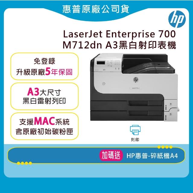 HP 惠普免登錄原廠超值5年保固★M712dn A3黑白雷射雙面列印印表機 (加碼送HP碎紙機)