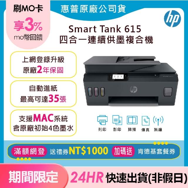 HP 惠普內含原廠四色墨水★Smart Tank 615 多功能連供無線傳真機(加碼送肯德基套餐/2年保固)