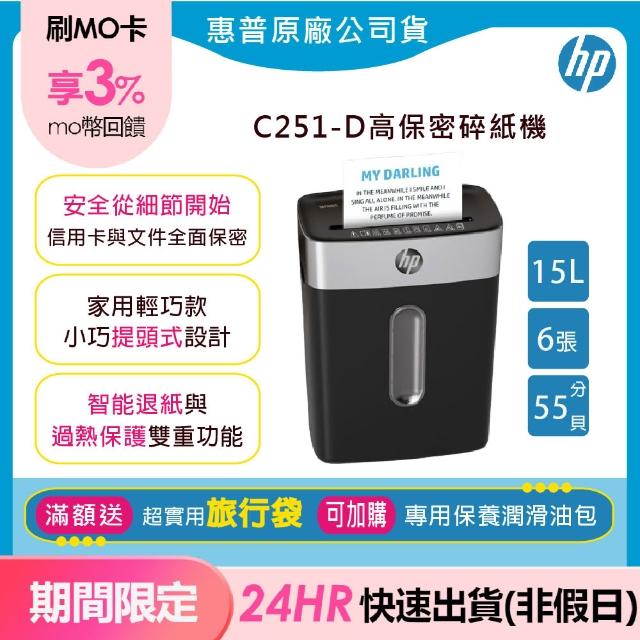 HP 惠普原廠【銀鈦黑質感】C251-D 高保密靜音細密碎紙機|6張保密碎段|原廠推薦專業款