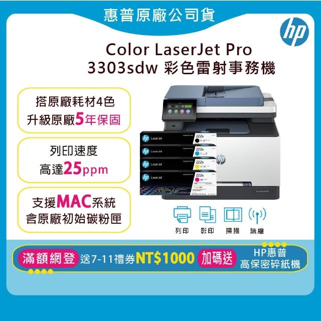 HP 惠普超值5年保1機+4色碳匣★ 3303sdw 彩色雷射多功能事務機(無傳真/加碼送HP護貝機)