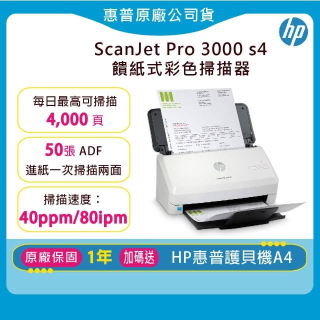 HP 惠普原廠 ScanJet Pro 3000 s4高速雙面饋紙式彩色掃描器(加碼送HP護貝機/原廠保固1年)