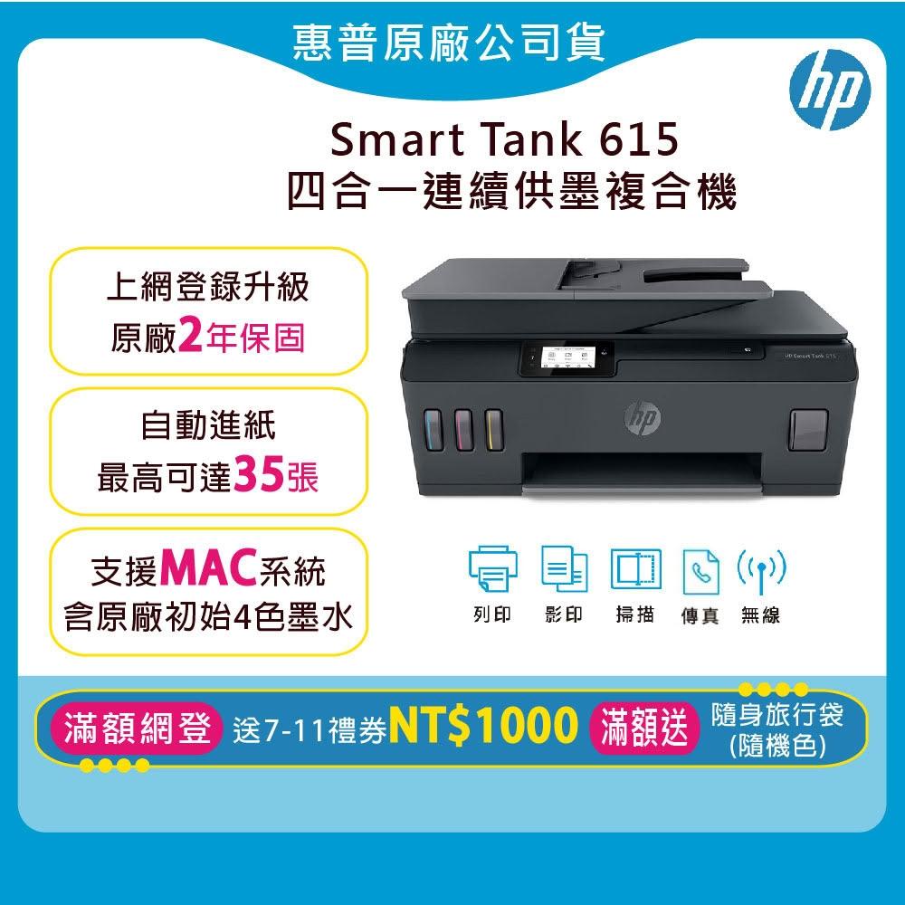 HP 惠普含原廠初始4色墨水★ Smart Tank 615 多功能連供無線事務機(網登送7-11禮券1000)