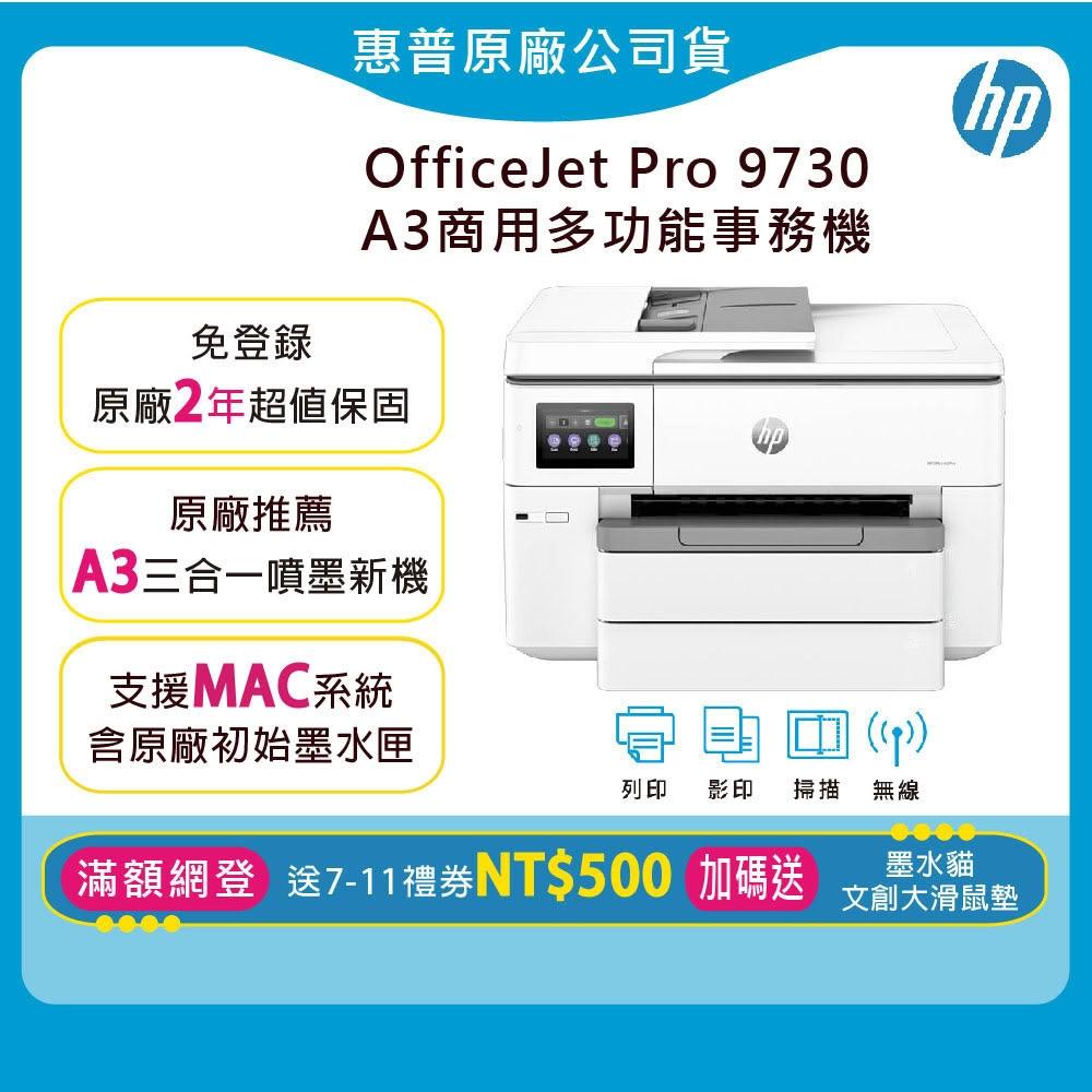 HP 惠普OfficeJet Pro 9730 A3 彩色噴墨無傳真多功能印表機(加碼送文創墨水貓大滑鼠墊/取代7740)