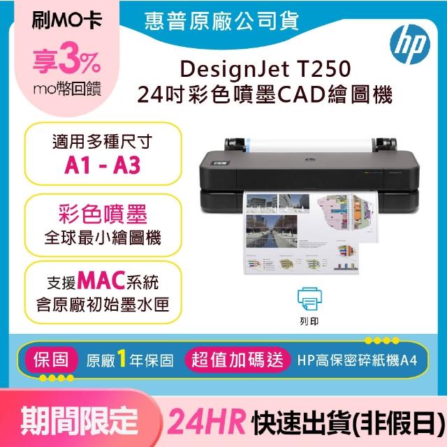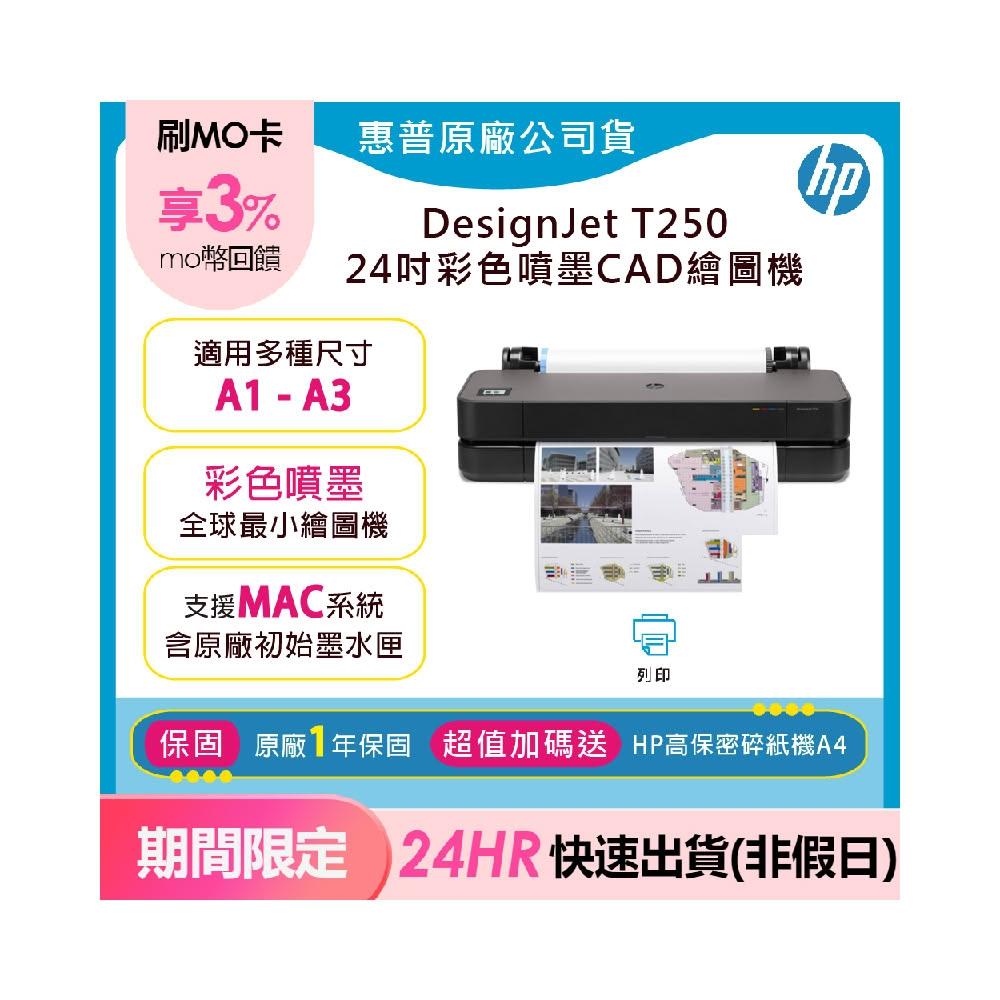 HP 惠普加碼送HP高保密碎紙機★DesignJet T250 24吋 A1彩色噴墨CAD繪圖機