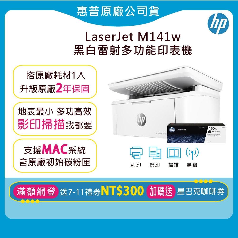 HP 惠普超值2年保組1機+1黑碳匣★ M141w 雷射複合印表機(加碼送星巴克咖啡券/免登錄升級2年原廠保固)