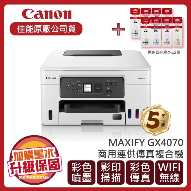 Canon超值5年保固組1機+4色墨水x2組★MAXIFY GX4070商用連供傳真複合機(加碼送肯德基蛋塔券/網登升級原廠保固5年)
