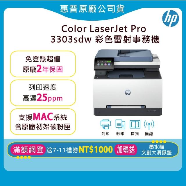 HP 惠普加碼送文創墨水貓大滑鼠墊★ 3303SDW / 3303sdw 彩色雷射多功能事務機(無傳真/原廠超值2年保固)