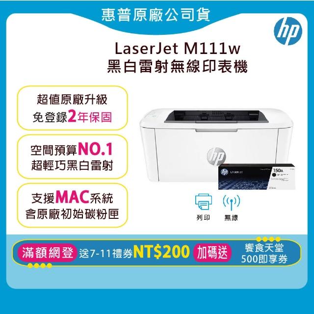 HP 惠普超值2年保1機+1黑碳匣★ M111w無線黑白雷射印表機(加碼送饗食天堂500即享券/免登錄升級2年原廠保固)
