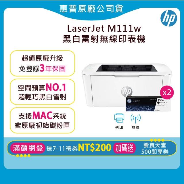HP 惠普超值3年保組1機+2黑碳匣★ M111w無線黑白雷射印表機(加碼送饗食天堂500即享券/免登錄升級3年原廠保固)