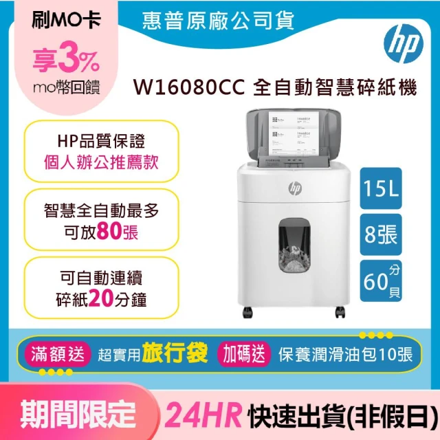 HP 惠普原廠極靜‧極細‧極保密80張|免手持|免等待全自動碎紙機W16080CC(限時送保養油包10張)