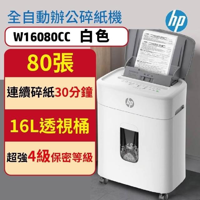 HP 惠普原廠極保密80張全自動碎紙機 白色設計款‧超靜音‧細碎形‧|免手持|免等待W16080CC