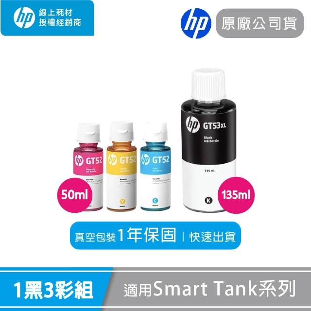 HP 惠普原廠墨水四色優惠組GT52(50ML)+GT53XL(135ML)真空包裝套組適用Smart Tank全系列印表機