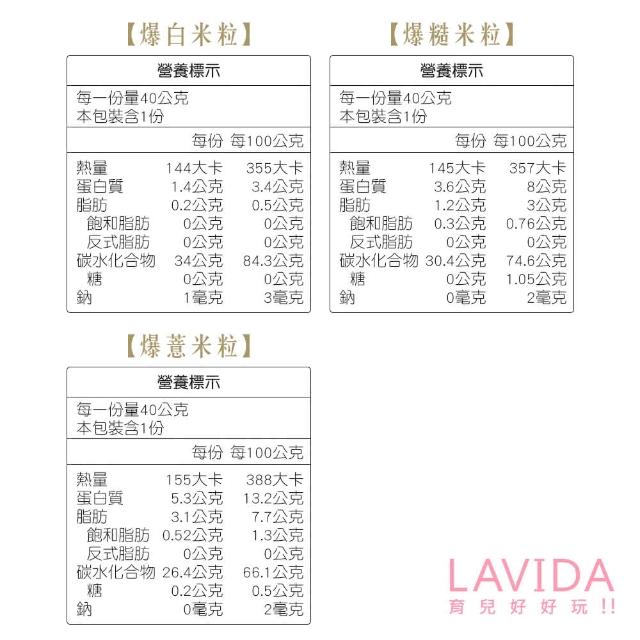 LAVIDA 育兒好好玩好米芽 無調味爆米粒40g/包爆白米 爆薏仁 爆糙米 傳統米香 磨牙餅 好米芽爆米粒