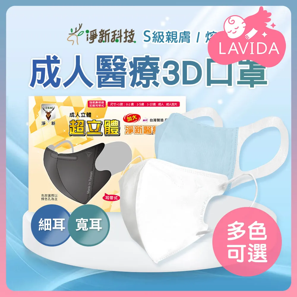 淨新成人3D口罩-細耳帶/寬耳帶成人口罩 立體口罩 淨新口罩 醫療口罩