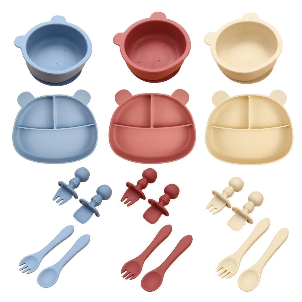 LAVIDA 育兒好好玩兒童矽膠餐具三隔餐盤兒童餐具 吸盤碗 矽膠碗 矽膠吸盤碗 寶寶碗 副食品 寶寶餐具