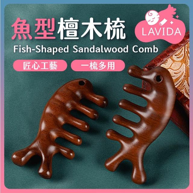 LAVIDA 育兒好好玩魚型檀木梳原木梳 檀木按摩梳 刮頭皮梳 魚型按摩梳 寬齒梳 金絲檀木頭皮按摩 梳子