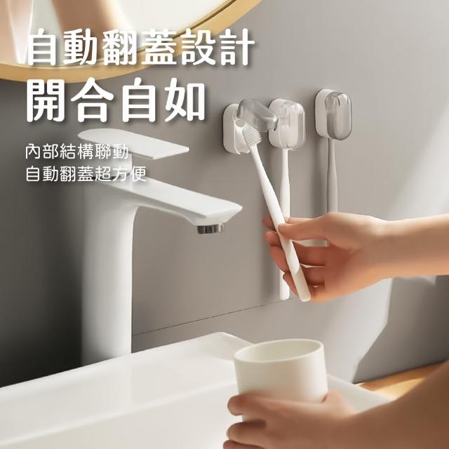 LAVIDA 育兒好好玩帶蓋牙刷架自動開合 牙刷架 壁掛牙刷架 牙刷套 牙刷防塵蓋 防塵 牙刷收納 牙刷掛架 防塵蓋 免打孔