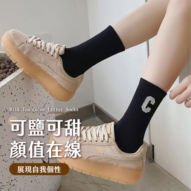 LAVIDA 育兒好好玩奶茶色字母中筒襪 中筒襪 春夏襪 長襪 襪子 棉襪 糖果 可愛 長襪 夏季 學院 潮流 耐穿