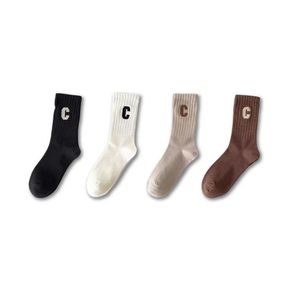 LAVIDA 育兒好好玩奶茶色字母中筒襪 中筒襪 春夏襪 長襪 襪子 棉襪 糖果 可愛 長襪 夏季 學院 潮流 耐穿