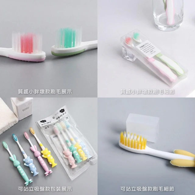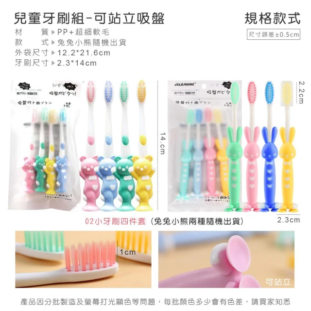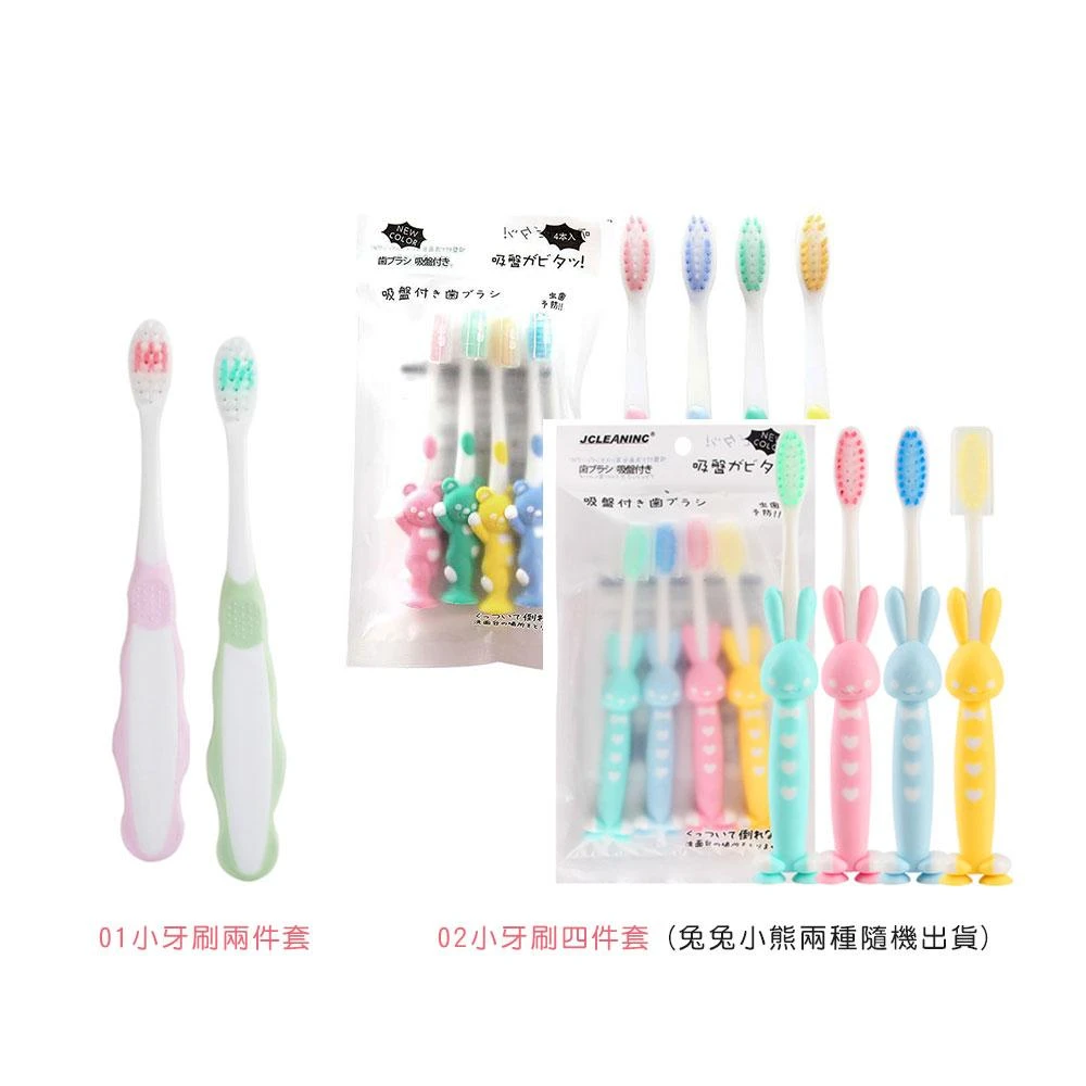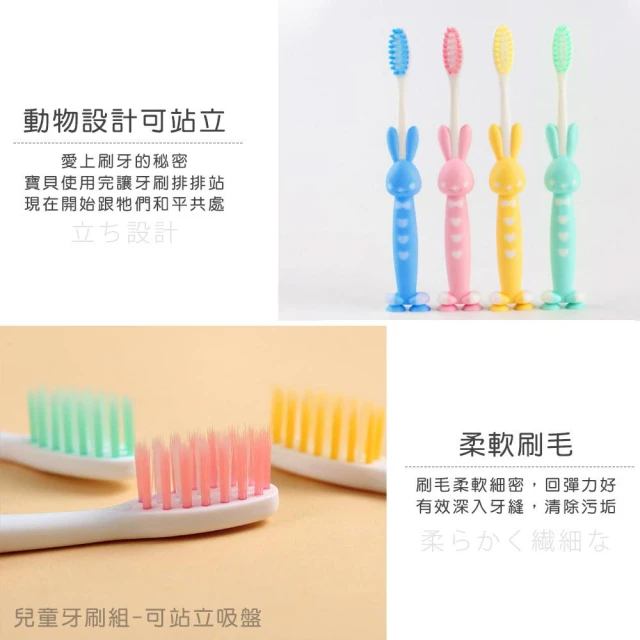 LAVIDA 育兒好好玩兒童牙刷4入1組 卡通吸盤牙刷 可愛牙刷 兔子牙刷 小熊牙刷 環保裝 兒童牙刷 牙刷