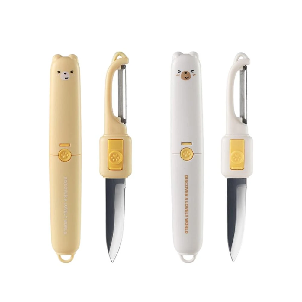 LAVIDA 育兒好好玩二合一水果刀 護手刀鞘 兩用水果刀 水果刀 削皮器 卡通水果刀 多功能水果刀 削皮刀 切片刀 廚具