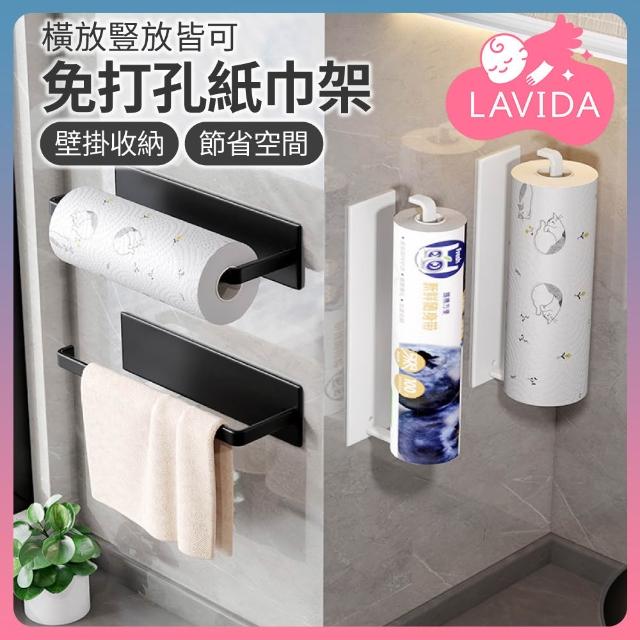 LAVIDA 育兒好好玩免打孔紙巾架 免打孔 收納置物架 免安裝捲紙架 廚房用 保鮮膜掛架 抹布掛架紙巾架 磁吸