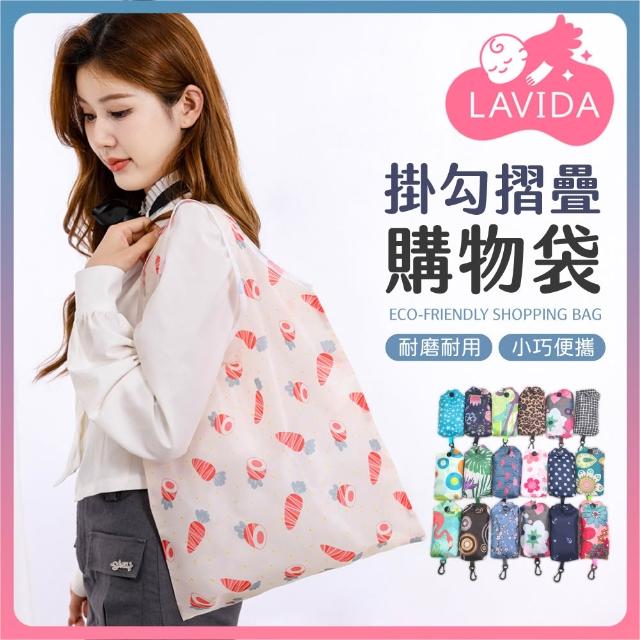 LAVIDA 育兒好好玩掛勾摺疊購物袋 摺疊 購物袋 隨身購物袋 印花購物袋 環保購物袋 提袋 大手提袋 輕便 防潑水購物袋