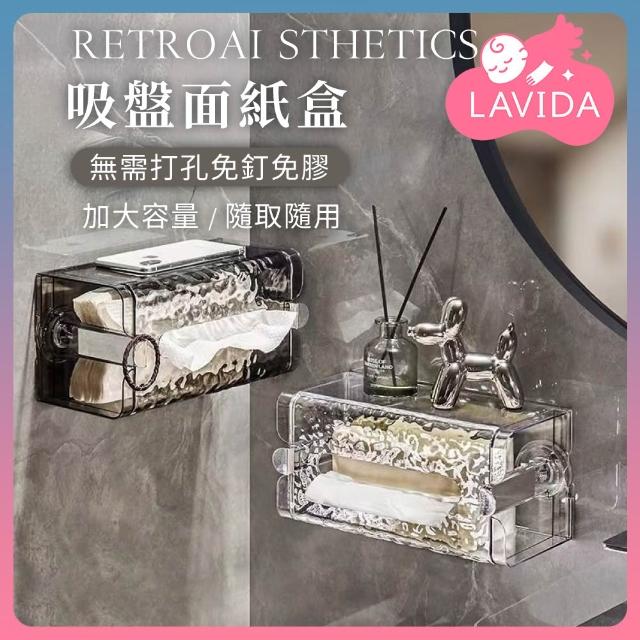 LAVIDA 育兒好好玩吸盤面紙盒 輕奢波紋 洗臉巾收納盒 壁掛式紙巾盒 廁所紙巾盒 浴室收納 寬口抽紙盒 廚房面紙盒 面紙