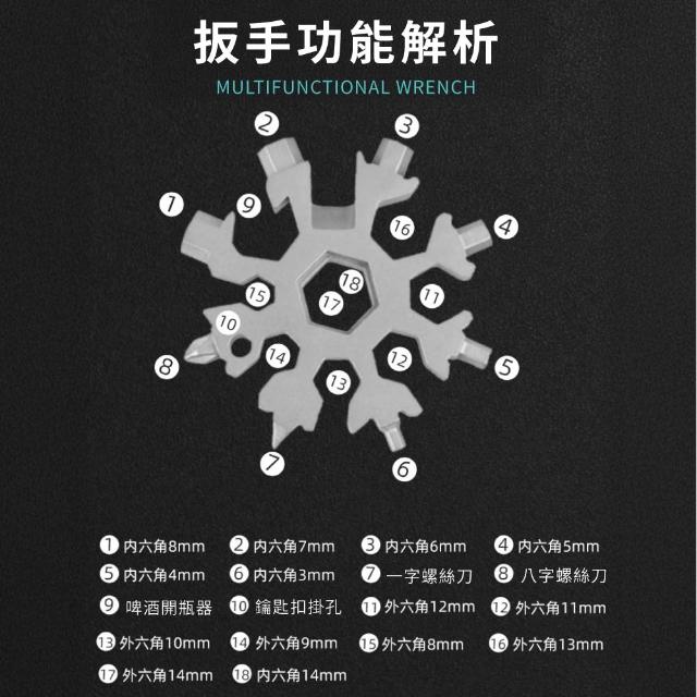 LAVIDA 育兒好好玩多功能雪花板手 多功能扳手 雪花造型扳手 18合1 隨身 工具組 多功能 板手 萬能扳手 開瓶器