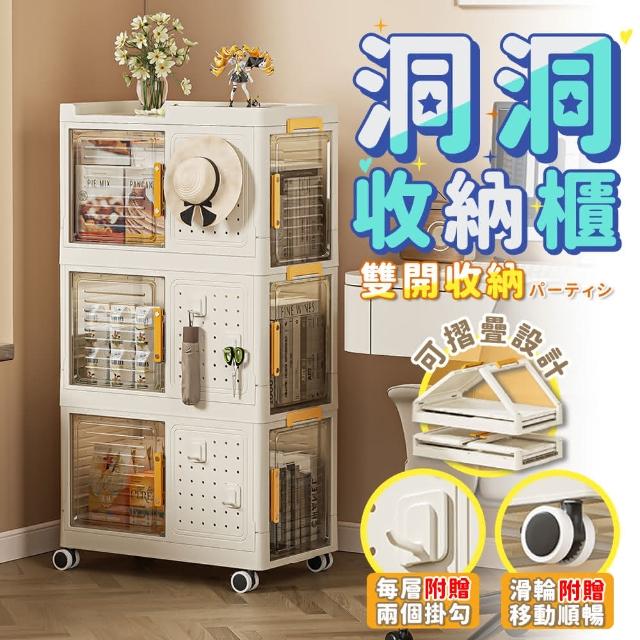 GieKe Life 極客生活CREAM 磁吸式雙開門洞洞收納櫃-三層150公升(收納箱 收納櫃 折疊收納箱 折疊整理箱 洞洞收納箱 洞洞收納 洞洞板收納 置物櫃 洞洞板)